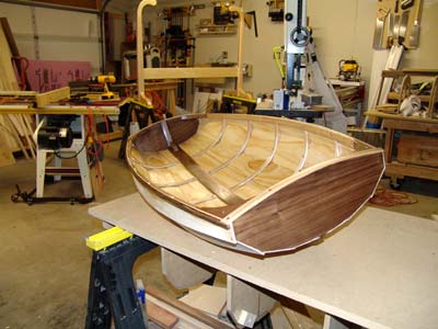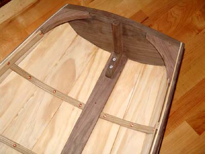 The trim pieces on the top of the transoms are ash with bronze ring nails.