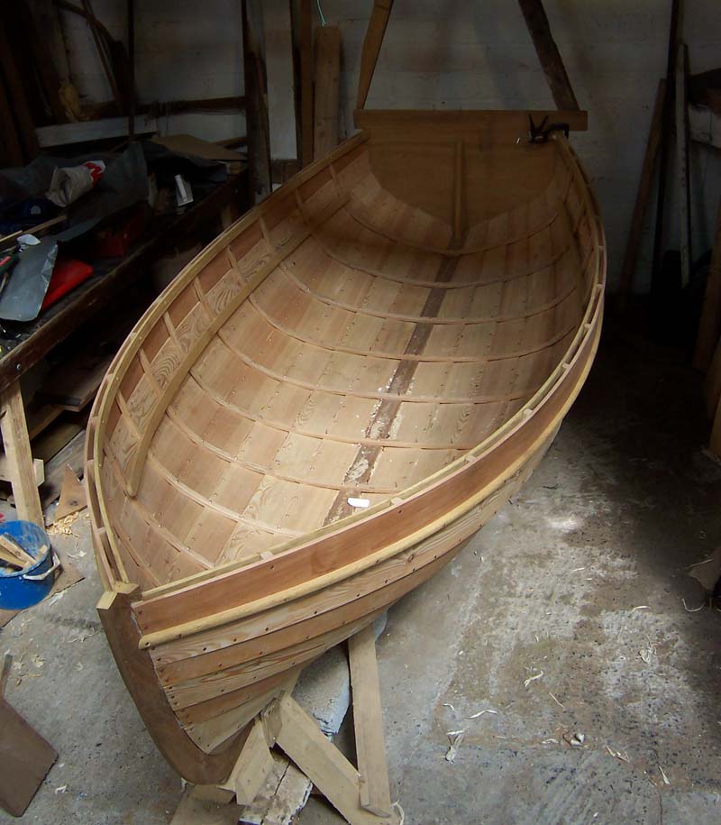 The photo is from June 2004 when I stopped work on it for the Summer. It is now quite close to being finished - needs caulking, installing of the thwarts (already cut) and painting.