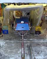 | Don't worry, it's temporary. Here's a better view of what it looked like in the shop getting this thing ready to get out. Except here we're taking the trailer out. |