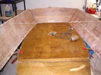 A word about luan. I get 6mm underlayment from Crosscut Hardwoods for $12 a 4’ x 8’ sheet. Toto is made from this stuff, as is my Windance (Thomson’s Moondance). Both boats have stood up very well. Toto made it through a hurricane sitting on top of my car in Loreto, Baha, last summer. The only damage was 100 mph driven wet sand into some of the deck seams (which I had not glassed) separating the plys for about an inch into the decks. A tough test! It was an easy repair as I just cleaned them up and fiberglass taped them like I should have done. Also I was impressed to find the sheet I had laying out on the woodpile for a couple years that was exposed to the soggy Oregon winters had no damage and no separations. It’s the lightest plywood to use for small boats, and if it's well glued and sealed I see nothing wrong with it. The wood techs at Crosscut tell me they use waterproof glue now in all luan. The panels I got had one very good face, and one face that needed some patching and sanding to smooth. I used Elmer’s exterior wood putty for doing this, it spreads smooth, is tough and sands very well.