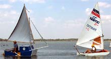 The PDR is a restricted design racing class developed in early 2004 by David (Shorty Pen) Routh. It is touted as the easiest boat in the world to build, and it certainly can be, if one doesn't get fancy. As I write this, 52 hull numbers have been assigned, with more boats always under construction. The greatest concentration of boats is currently in Texas, but there are fleets in 18 different states, as well as Canada, Britain, and South Africa. Details are copiously available at www.pdracer.com. |