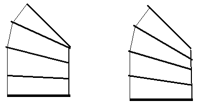The main sheets consist of a rope which runs from the sailor's hand through one block, which is fixed to the boat, up to a block attached to a loop of rope (sheetlet) connecting the top two battens. Then down through another block fixed to the rear of the boat and up to the boom (see fig 6). This exerts a diagonal pull at all points of attachment and keep the leech taut.