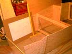Well, things have moved along and a plywood purchase was made. I began by laying out the plans on a few large sheets of cardboard so they are kept straight and neat. I like them right on the jobsite to keep me focused. I also pulled out my large drywall square I bought on the last basement project I finished. I figured a drywall square would be a lifesaver to keep 4x8 sheets of AC plywood square. It has been a lifesaver.