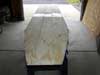 I laid out full sheet of OSB over two sawhorses to use as a work surface. I propped it up in the middle with a couple buckets and shims so that it would not sag. I laid out the two pieces for the bottom with the edges butted together. I then fiber-glassed them together. I used several coats of resin over the glass sanding lightly in between coats. I carefully turned the bottom over careful not to crack the seam and fiber-glassed the other side of the seam. I then joined the front and back of the sides in the same way. I now have 2 side pieces that are 10’ x 13’ and one bottom that is 28” x 13’.