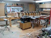 I am going to paint the bottom to about 3" above the chines hunter green and leave a wide strip of bright wood showing down each side (like a woody car - only not). The plan is to leave the inside of the hull bright except for my trademark green carpet - but of course that depends on what it looks like when it is sanded and glassed! If it is as good as the outside - then I will varnish it.