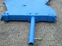 I made the tiller socket from 3/4” steel pipe with a slot cut to mate with the stub tiller’s internal weld seam. This keeps it from turning. I had to sand down the ¾” pipe to get it to slip inside the tiller’s 1.25” pipe. Then I welded on some ½” steel pipe and bent it to clear the motor. The motor isn’t present in the photos, but believe me, it really does take up that much space!