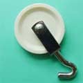 You’ll notice that this system requires a lot of sheaves. On the other hand it does work pretty well, and Duckworks helps keep the cost under control. But we need a special fitting. Steering sheaves are made for where the cable is pulling away from the anchor point. But the way my wheel is set up, I need the opposite kind to take cable off the drum without it rubbing in the hole through the bulkhead. These are readily available at decent hardware stores and agricultural suppliers. I got these at Farm & Fleet for about $4 each. That’s a little pricier than I would have guessed, but to get 2” sheaves you’re stuck with a weight rating that is radical overkill for a boat this size.