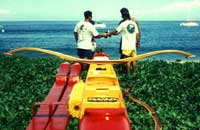 canoe paddle. Experienced Hawaiian steersman use huge,
