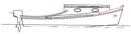 Jim is very conservative with freeboard for obvious reasons. But on the first outing with the AF4B, the kids discovered they couldn’t reach the water with their hands. This is a big deal to them and if the kids didn’t like the boat, I would too would soon be getting rid of it. Simply lowering the rail aft looked ridiculous. A few drawings led me to borrow some of the styling of Kilburn Adams’ SkiffAmerica20 design. Here are the lines before and after.