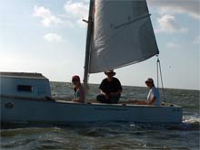 The amas that Charlie added to the Sharpie were designed by Graham Byrnes. Graham gets the prize for towing his boat farther than anyone - all the way from Oriental, North Carolina. He brought his daughter and granddaughter along as crew.