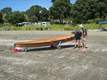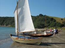 The long white boat is a Mahurangi punt Unique to the area Windfola inthe backgound getting ready to race.
