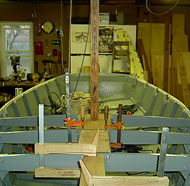The breast hook is bedded in epoxy and tied to the hull and beam with 3” #10 woodscrews.