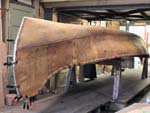 How the ribs are laid on top of sheathing and beveled underneath inwale. The gunwale cap is visible as well. |