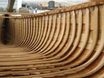 Here the ribs, temporary sheathing and binders are visible. About 2/3rd of the ribs are in place. |
