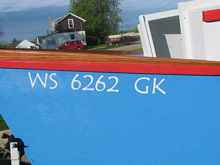 boat with mailbox letters slapped onto it for the registration
