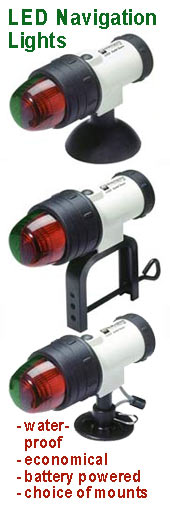 The old AA battery box for the compass light was suggestive of a solution. It was a cheap "disposable" small food container sold everywhere, big enough to take the eight AA batteries in a holder. A hole for a regular marine switch was drilled in the top, and the switch, held in place with a locking nut, was installed with caulk. This type of switch can take a rubber boot, sold separately, which makes it if not waterproof at least highly water resistant. Then it was a simple matter to run wires to the light, caulking around where they go through a hole drilled in the side of the box. (The original idea for the AA battery box came from Doug Cameron, a fellow competitor from the Everglades Challenge. He used 8 D-cell batteries in a waterproof box as external power for his GPS.)