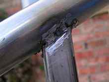 What became of the hand rail? Well fortunately we British have developed a special gap filling cellulose based paint for disguising bad welds, its called Hammerite.