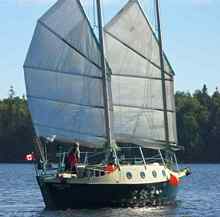 Our present yacht, Easy Go, is a 34' Junk Rigged Dory Schooner of Jay Benford design. She has no motor and relies entirely on wind, yuloh and kedge anchor for propulsion. We have found, through experimentation, that it is indeed possible to abandon the Internal Combustion Engine for an environmentally superior form of auxiliary propulsion.