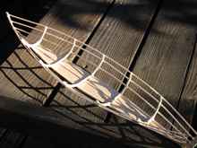 Close up of strongback with brackets, frames, stringers and cord holding all from floating away.