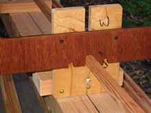 Here's my ripping set up taken from C. Cunningham's "...... Greenland Kayak" book. Last shows the cut stringer on right side of left piece. Other piece is part of the guiding set up. Lots easier than trying to run 18' 2x8's through a tablesaw.