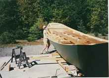 For many years I have built canoes and small boats but when I got married and kids came along we needed something bigger.  So 16 years ago I was looking for something simple to build but large enough to handle my wife and two active kids. I settled on the St. Pierre Dory as the safest small cruising boat.  For over 100 years these seaworthy craft have been carrying their crews of two or three fishermen to the fishing grounds off Newfoundland with incredible reliability, safety, and economy. John Gardner in his Dory Book states that not one St. Pierre Dory has ever been lost at sea.  That sounded perfect for a young father.