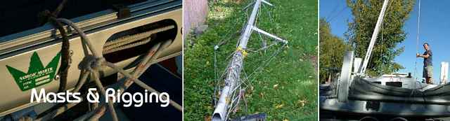 One efficient cruising rig with a shorter mast and small yard that can work well on a multihull, is the Wharram Wingsail seen here. Here the mainsail has a large sleeve that goes around a plain, tubular mast and hauled up with a short yard. Simple and efficient, and typically used without a boom. The sail does not readily remove from the mast though, unless the sleeve were closed with an overlapped lacing or with somewhat unreliable Velcro.