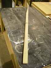 Blades. One blank with layout lines, and one already cut to shape on bandsaw.