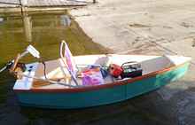 After all the details were worked out, the hull sealed and painted, the motor and battery location established and the seat selected and purchased, the only thing left to do was to get it in the water. These are the following pictures.