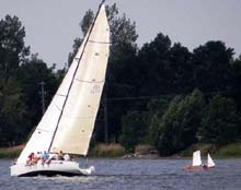 I'm including this shot again so you'll know why we call him Crazy Steve. This is him out in the middle of the St Lawrence river in a Wee Lassie that he converted from a 10 pound eleven foot long canoe into a 20 pound eleven foot long schooner. He probably calls for the right away on these other boats.