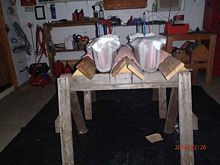 Just finished glassing the second pontoon. This being my first attempt at glassing it's been a learning experience. Considering my experience, these came out pretty good. They will need some sanding and possibly one coat of thickened epoxy rolled on prior to prepping for painting. I haven't weighed them, but I'm guessing they each weigh about 10lbs, I'll weigh them soon as the second one cures.