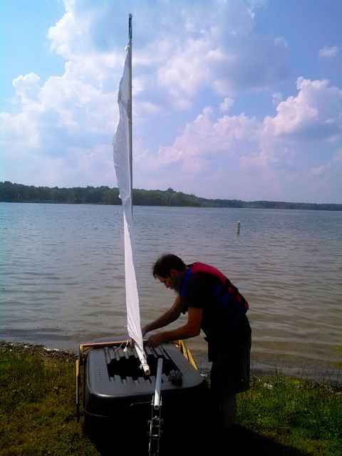 Carrier moved well and could be headed on a reach fine in the really light air. Craft showed promise of better performance with the improvements list checked complete, and some real wind. Not bad for a first time design! I could have confidently crossed the lake's mile, and returned on a downwind run.